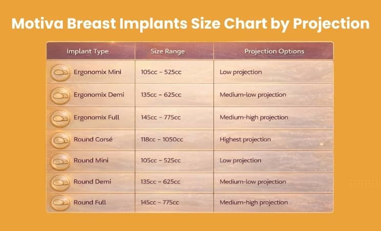 Motiva offers an extensive range of implant sizes to accommodate the desires of women. The implant sizes range from 105 cc to 1050 cc. Here are various options you can choose from during your breast augmentation surgery in Delhi