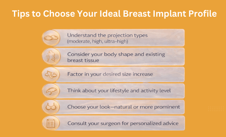 The type of implant profile you choose will depend on your desired breast shape, such as a teardrop-like contour or a round look.